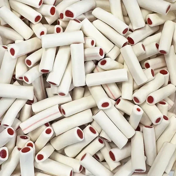 Le Mini Câble Fraise-Crème de chez Dulceplus est un bonbon qui a le goût de fraise et a une texture moelleuse.